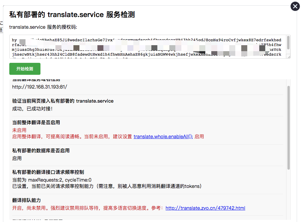 - 当前主要针对翻译服务私有部署进行的适配,后续会放开对所有开源版本的自检适配